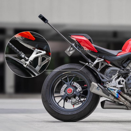 Gracias al diseño de perno en U y los dos espaciadores incluidos, puedes adaptar este soporte a la mayoría de las motocicletas del mercado, garantizando una fijación segura y versátil.