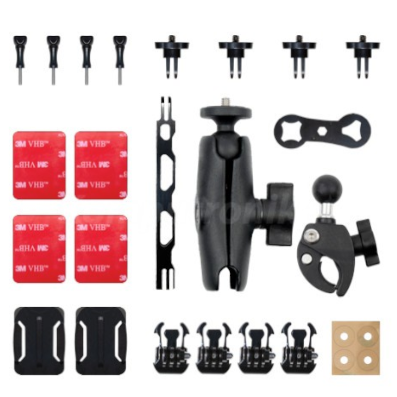 * Incluye la nueva Pinza Ultra Resistente con Montura de Doble Rótula. Úsala para montar la cámara en el manillar o barras de tu moto.