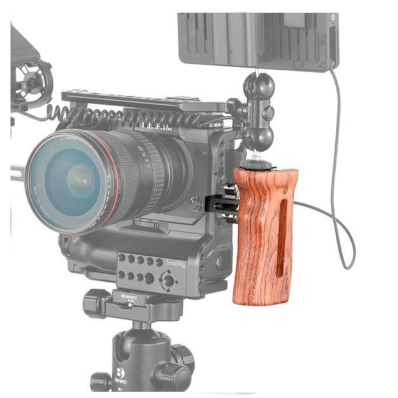 El mango lateral de madera universal SmallRig HSN2093C está diseñado para proporcionar un agarre cómodo para una mayor estabilización y soportes para accesorios para los camarógrafos.