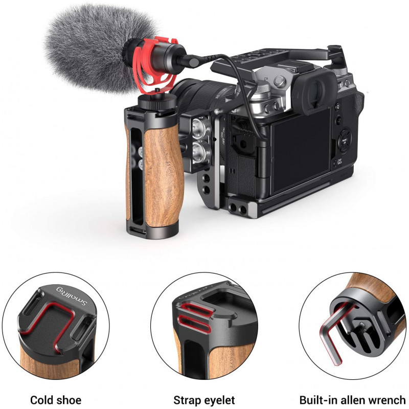 SmallRig 2913 Wooden Mini Side Handle (Tornillos de 1/4”-20) para Camera Cage