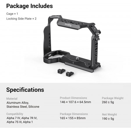 Para Alpha 7 IV/Alpha 7 S III/Alpha 1/Alpha 7R IV : SmallRig Cage 3667 está diseñado para facilitar tomas de ángulo bajo y proteger la cámara al tiempo que ofrece una amplia gama de soportes para accesorios. Está diseñado para Sony Alpha 7 IV, Alpha 7 S III y Alpha 1