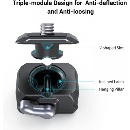 Super Safe and Secure: este kit de liberación rápida es una patente exclusiva diseñada por SmallRig. Cuenta con una estructura de bloqueo doble dentro de la placa base, proporciona una alta capacidad de carga de 5 kg. La placa QR es compatible con dispositivos con roscas de 1/4"-20, como cámaras, monitores, jaulas, placas de montaje, etc., y puede doblarse de manera vertical y estable en la placa base, sin causar deflexión