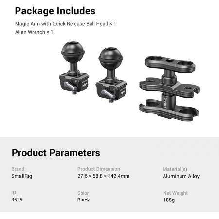 Diseño de liberación ultra rápida y caída: SmallRig Magic Arm con cabeza de bola de liberación rápida 3515 es un montaje de liberación rápida, sus cabezas de bola cuentan con un kit de liberación rápida y ranuras para tornillos roscados de 1/4 "-20 en ambos extremos. Este kit QR permite usted para liberar y configurar entre cámaras, teléfonos inteligentes y monitores en un segundo en lugar de atornillar, ahorre mucho tiempo