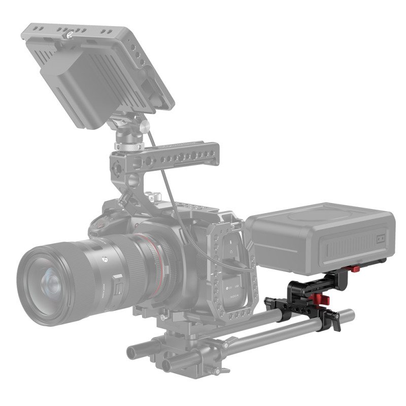3. Viene con una abrazadera de barra doble de 15 mm con un brazo ajustable para ayudar a montar la placa en su sistema de barra LWS de 15 mm y ajustar la posición de la batería de montaje en V según sea necesario.