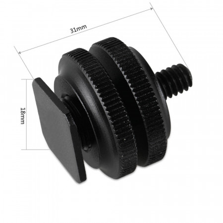 Con el adaptador de zapata fría SmallRig 1631 puede montar accesorios con una conexión de 1/4" en la zapata de su cámara. Hay una conexión de 1/4" en la parte superior del adaptador y una conexión de 3/8" en la parte inferior El embalaje contiene 2 adaptadores.