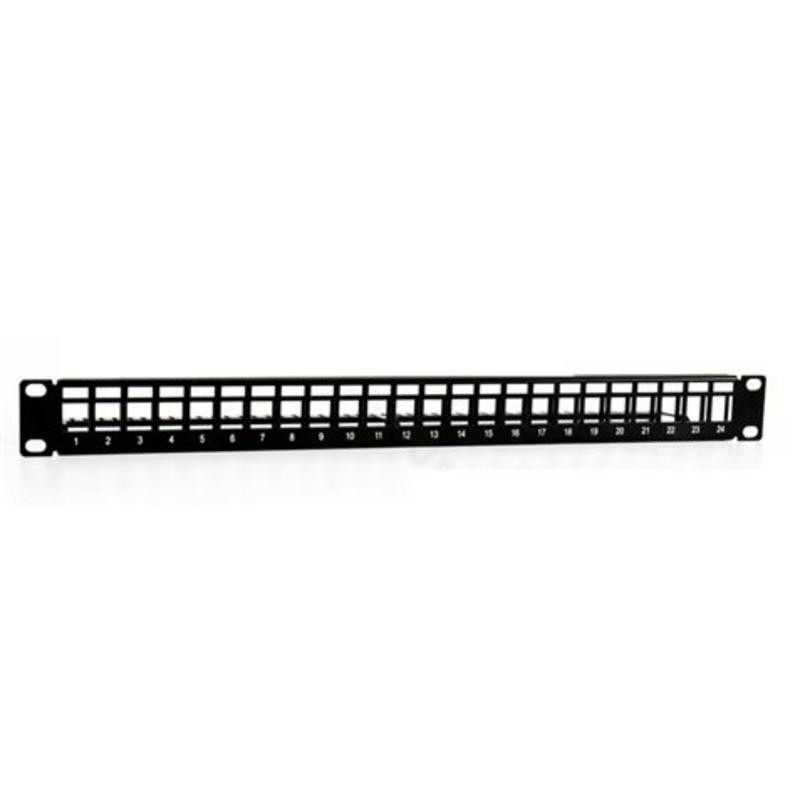 El panel de parcheo vacío Cromad de 24 puertos es una solución robusta y esencial para cualquier instalación de red que requiera un cableado estructurado eficiente y adaptable. Fabricado para un ancho de perfil estándar de 19 pulgadas, este panel ocupa solo 1U de altura en tu rack, maximizando el espacio disponible.