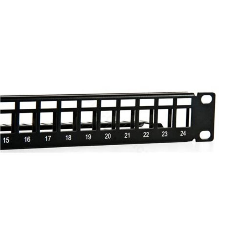 - Capacidad: 24 puertos para conectores tipo Keystone, compatibles con Cat.5, Cat.6 y superiores.