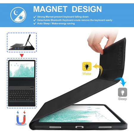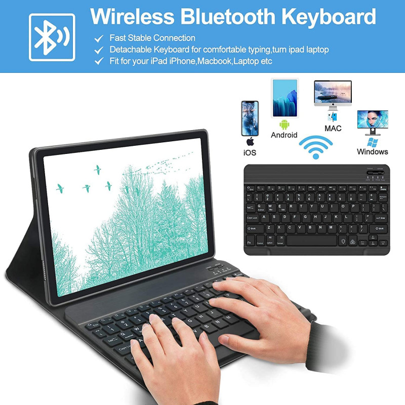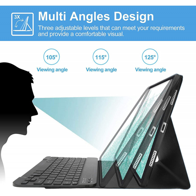 【Múltiples ángulos de soporte, protección premium】 Nuestro estuche para teclado Samsung Galaxy Tab S7 11 '' 2020 es extraíble y se usa como parte del soporte de la tableta. Mueva el teclado hacia adelante o hacia atrás, puede ajustar el ángulo de la tableta según sus preferencias, lo que le brinda una versatilidad asombrosa. Con un diseño antideslizante puede ofrecer una protección completa, protegiendo su tableta de huellas dactilares, golpes, arañazos y polvo.