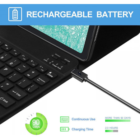 【Teclado Recargable, Batería de Larga Duración】 El teclado inalámbrico para galaxy tab S7 de 11 pulgadas tiene una batería recargable incorporada de 280 mAh y puede funcionar 500 horas sin luz de fondo o 3 horas con luz de fondo encendida. El tiempo de espera es de hasta 800 horas. Con un diseño bien espaciado similar al de una computadora portátil y teclas de acceso directo que pueden mejorar el control y la comodidad de uso