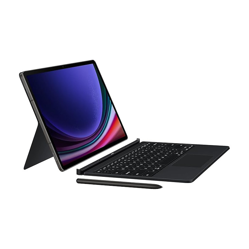 El teclado SAMSUNG Book Cover EF-DX815 para el Galaxy Tab S9 + es una funda protectora de dos piezas con un teclado QWERTZ completo y conexión a través de un pin POGO. El teclado totalmente retroiluminado con teclas de función y trackpad, combinado con el modo DeX, permite una experiencia similar a la de una PC con solo presionar una tecla. Con su diseño magnético, la parte posterior del teclado de la cubierta del libro es fácil de colocar y separar para personalizar el Galaxy Tab S9 +. La cubierta se pliega hacia atrás hasta 150 ° para un uso cómodo del teclado, para una vista relajada, ya sea que esté trabajando en casa en el sofá o en una cafetería. El uso compartido del teclado inalámbrico también facilita la conexión de otros dispositivos Galaxy para escribir, navegar y cambiar fácilmente entre ellos. También hay un compartimento S-Pen integrado para llevar el lápiz sin preocupaciones.