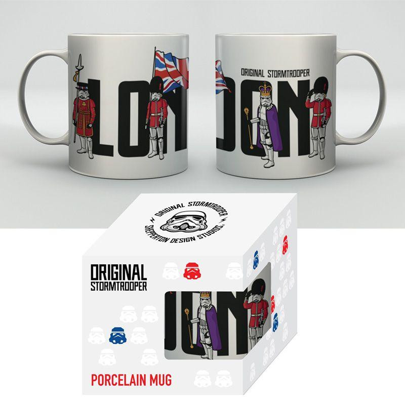 Empieza el día con un toque galáctico con esta fantástica taza de desayuno inspirada en Star Wars. Con un diseño llamativo del icónico Soldado Imperial Stormtrooper ambientado en Londres, esta taza es perfecta para los fans de la saga.
