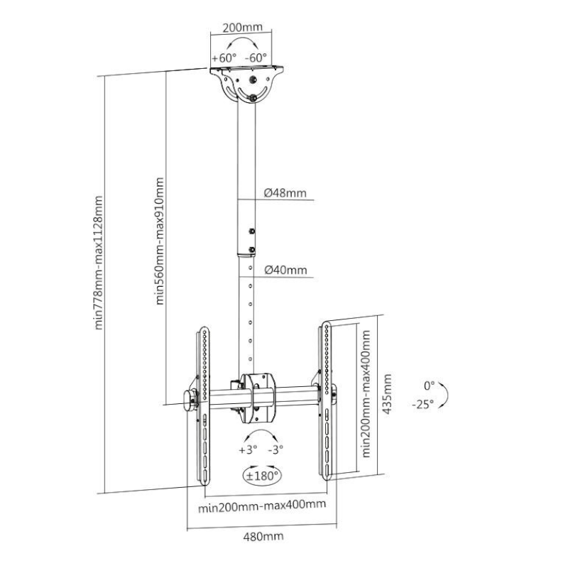 Inclinación de +0º - 25º sin desmontar el TV del soporte.