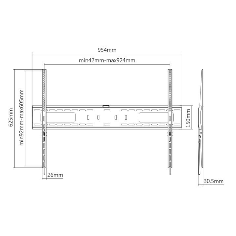 Sistema de anclaje compatible con norma VESA (máx. 900 x 600 mm).