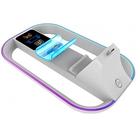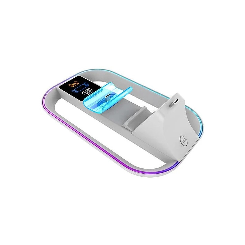 La base de carga incorpora iluminación RGB LED con 14 modos diferentes, para que puedas darle un toque personal a tu espacio de juego. Además, el botón ON/MODE/OFF te permite controlar fácilmente la iluminación según tu preferencia.