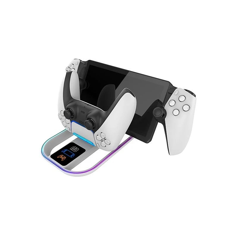 Nuestro dock permite la carga simultánea del Reproductor a Distancia PlayStationPortal™ y un Mando DualSense™, asegurándote de que ambos dispositivos estén listos para la acción en todo momento.