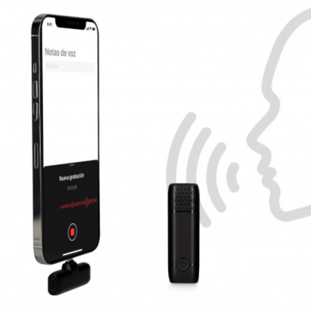 Nuestro micrófono inalámbrico es facilísimo de utilizar. Solo hay que conectar el receptor al Smartphone, colocarse el micro, ¡y listo! Olvídate de las apps complementarias.