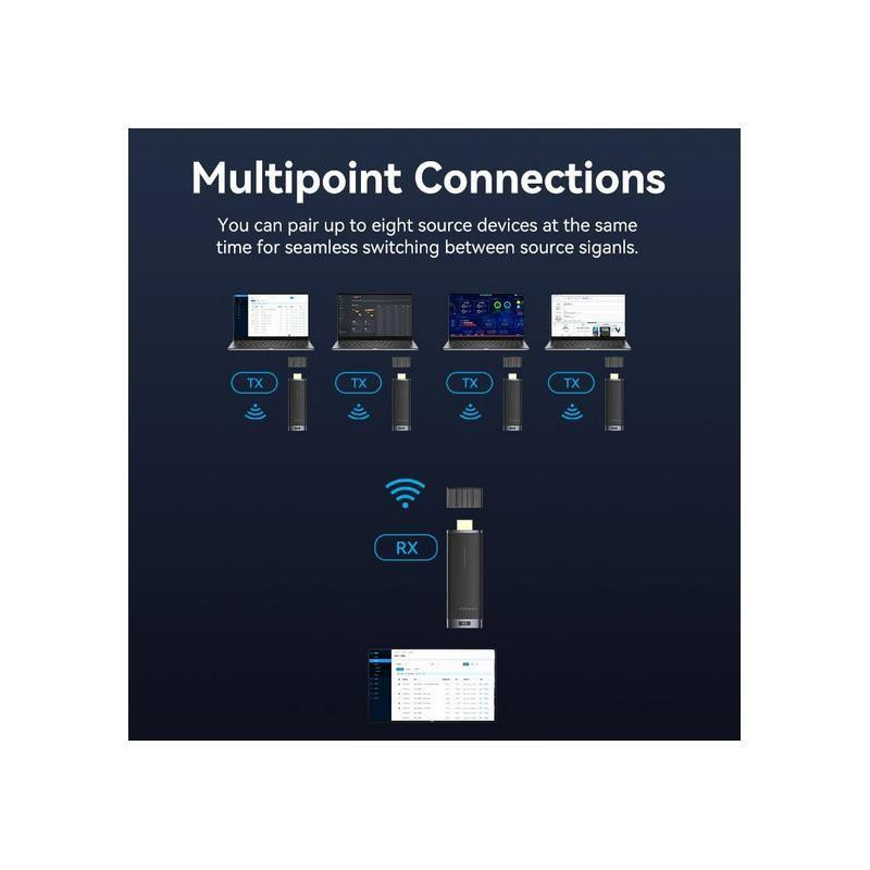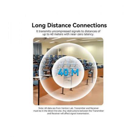 Disfruta de la libertad de transmitir audio y video de forma inalámbrica con el adaptador HDMI de Vention. Este dispositivo te permite conectar tus dispositivos HDMI a una distancia de hasta 40 metros, eliminando la necesidad de cables y facilitando la configuración de presentaciones o sistemas de entretenimiento.