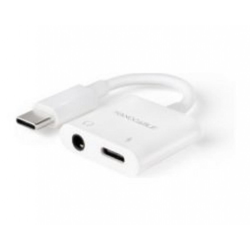 Nanocable USB-C a Jack + USB-C/H 60W Blanco (10.24.1206)