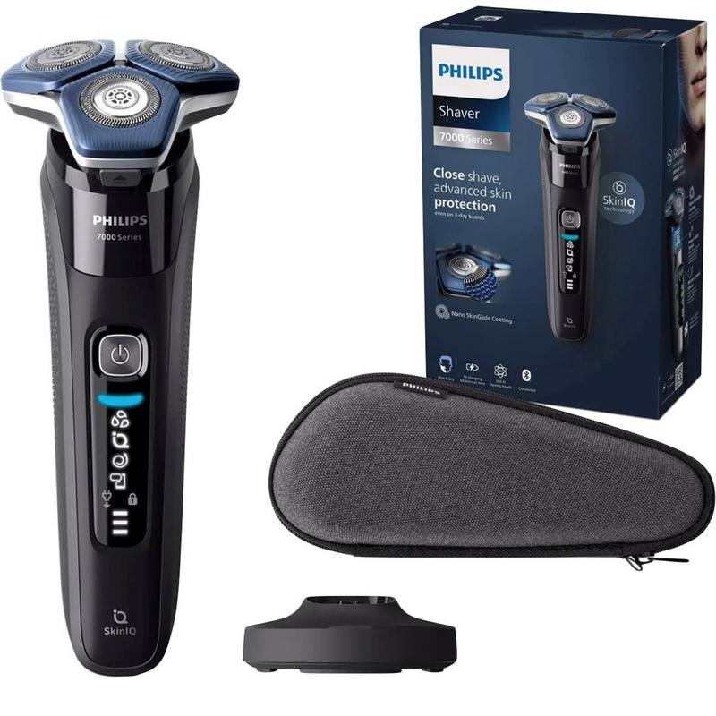 La afeitadora eléctrica Philips Series 7000 S7886/35 redefine el afeitado con su avanzada tecnología SkinIQ, ofreciendo un afeitado apurado y una protección superior para la piel. Se desliza suavemente, cortando cada pelo con precisión, incluso en barbas de hasta 3 días. La tecnología SkinIQ detecta, se adapta y guía tus movimientos para maximizar la protección cutánea.