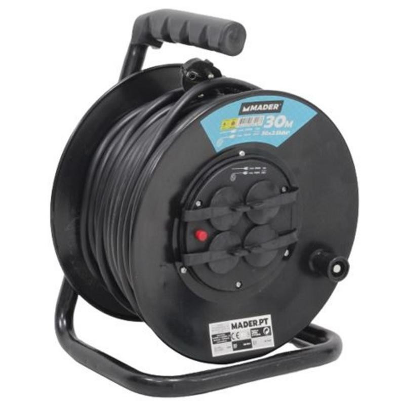 El enrollador de cable Mader es la solución perfecta para llevar energía donde la necesites, tanto en el hogar como en entornos de trabajo. Diseñado para ofrecer durabilidad y seguridad, este dispositivo robusto te proporciona un alcance excepcional de 30 metros.