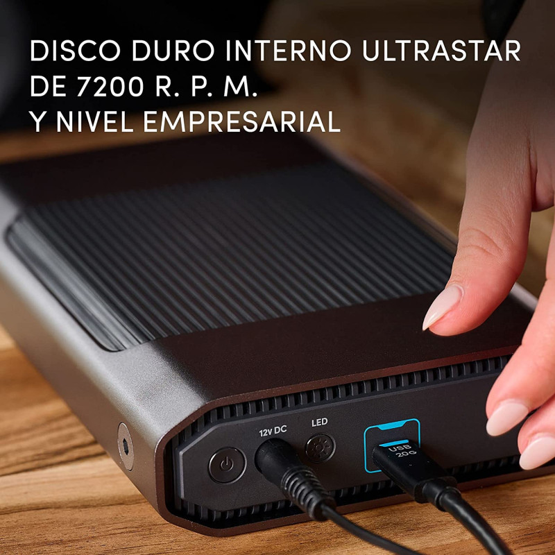 El disco duro de nivel empresarial SanDisk Professional G-DRIVE con conexión USB-C™ (10 Gb/s) ofrece un almacenamiento de alta capacidad y extremadamente fiable en un diseño elegante y de gran calidad.