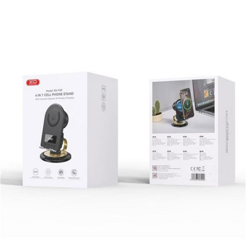 El XO F69 redefine la funcionalidad de los accesorios para smartphone, integrando un altavoz Bluetooth, una base de carga inalámbrica y un soporte giratorio en un diseño elegante y compacto. Este dispositivo multifuncional es el complemento perfecto para cualquier escritorio, mesita de noche o espacio de trabajo, manteniendo tu móvil cargado y el entretenimiento al alcance de tu mano.