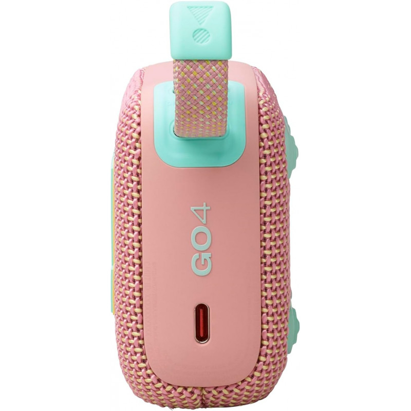 • El atrevido altavoz Bluetooth portátil JBL Go 4 cabe en la palma de la mano y su asa integrada rediseñada hace que sea fácil de llevar a cualquier parte.