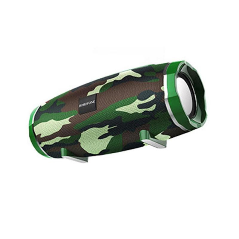 El BOROFONE BR3 es un altavoz deportivo inalámbrico que destaca por su estética de camuflaje, ideal para llevar tu música a cualquier aventura.