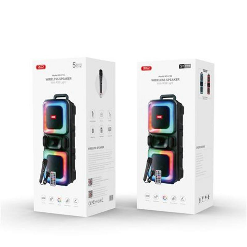 Transforma cualquier reunión en una fiesta inolvidable con el altavoz karaoke XO F55. Este potente altavoz portátil está diseñado para ofrecer una experiencia sonora envolvente y visualmente impactante, gracias a sus luces RGB dinámicas que se sincronizan con la música, creando el ambiente perfecto para bailar y cantar.