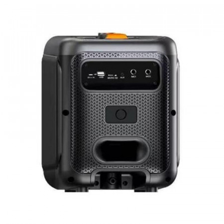 Su potente altavoz de 8 pulgadas proporciona un sonido claro y dinámico, con una potencia de salida de 30W RMS que llenará cualquier espacio. La verdadera magia comienza con la función de karaoke: incluye dos micrófonos inalámbricos de alta calidad y un efecto de eco ajustable, permitiéndote cantar tus temas favoritos como un profesional. Además, cuenta con una perilla de volumen independiente para los micrófonos, facilitando el control.