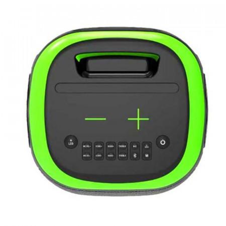 Diseñado para la diversión en cualquier lugar, incorpora una batería recargable de gran capacidad (7.4V 5400 mAh) que asegura horas de entretenimiento sin interrupciones. La iluminación LED multicolor integrada añade un espectáculo visual dinámico que pulsa al ritmo de la música, creando el ambiente perfecto para cualquier ocasión. Su asa de transporte y su construcción robusta lo hacen ideal para uso doméstico, celebraciones, reuniones, colegios y pequeños eventos.