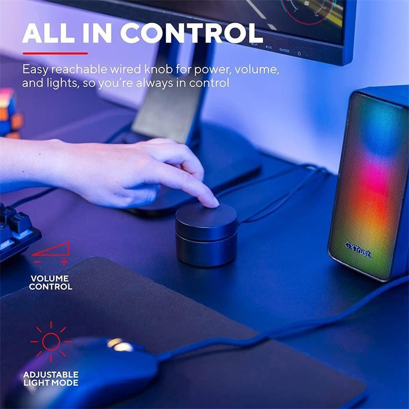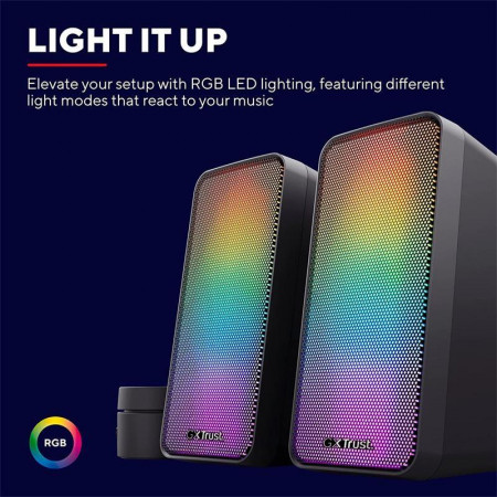 Sumérgete en un mundo de sonido vibrante e iluminación personalizable con los altavoces Trust Wezz GXT 611 RGB 2.0. Diseñados para ofrecer una experiencia de audio inmersiva, estos altavoces son perfectos para juegos, música y películas.