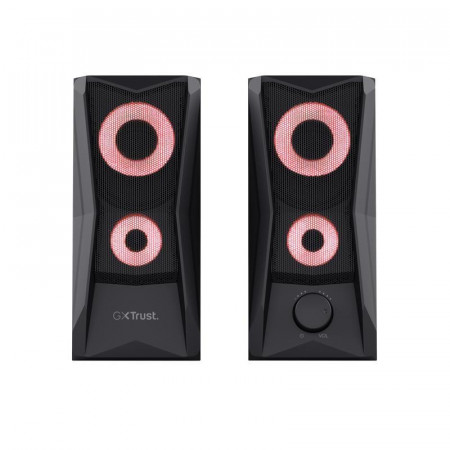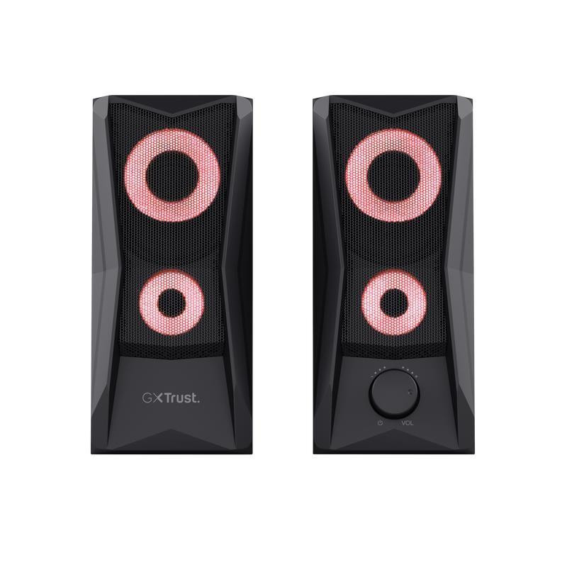 Sumérgete en tus juegos con el juego de altavoces Trust GXT 606 Javv 2.0. Su diseño compacto y atrevido con iluminación RGB te proporcionará una experiencia de audio inmersiva sin necesidad de auriculares.