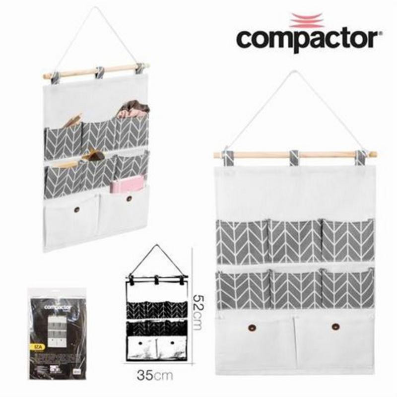 Su tamaño compacto de 35x52 cm lo hace ideal para colgarlo en puertas, armarios o directamente en la pared, aprovechando el espacio vertical. Fabricado con un tejido resistente, su diseño en colores blanco y gris neutros se adapta armoniosamente a cualquier estilo decorativo, aportando funcionalidad sin sacrificar la estética.