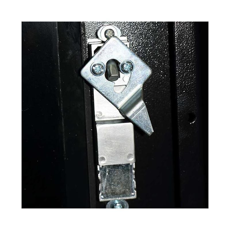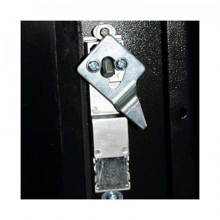 - Puertas Perforadas: Puerta frontal y doble puerta posterior metálicas perforadas con cerradura de seguridad para una ventilación óptima y acceso restringido.