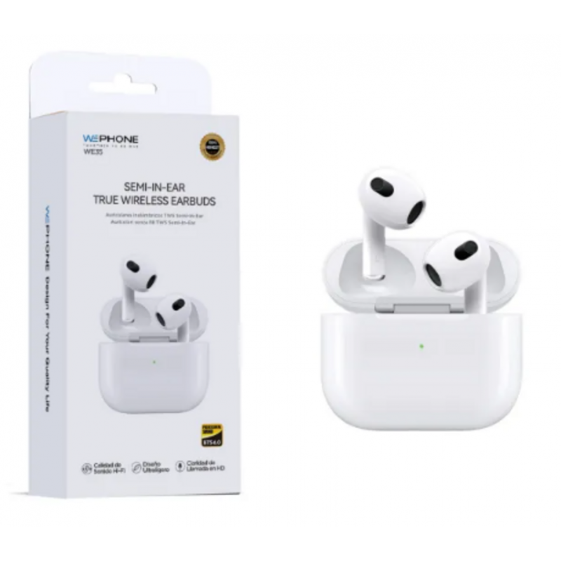 Descubre la libertad de movimiento y una experiencia auditiva excepcional con los Auriculares Inalámbricos Wephone True Wireless Semi-in-ear WE35, en su versión V6.0. Diseñados para el confort y la calidad, estos earbuds ofrecen una solución de audio moderna y práctica para tu día a día.