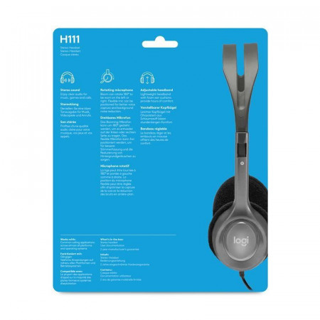 EAN 5099206057340Los auriculares estéreo Logitech H111 son una solución sencilla y fiable para tus necesidades de audio diarias. Ideales para llamadas, música y juegos, ofrecen un sonido claro y un micrófono funcional para una comunicación nítida. Su diseño ligero y diadema ajustable aseguran comodidad durante horas.
