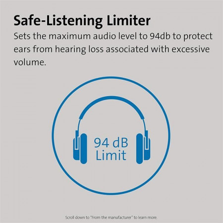 - Limitador de Escucha Segura: Nivel de audio máximo de 94 dB para proteger los oídos.