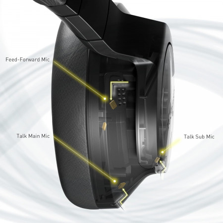 - Cancelación de ruido: líder en la industria, estos auriculares combinan la cancelación de ruido Híbrida Dual (feedforward y feedback) con el procesamiento analógico y digital para una escucha verdaderamente envolvente