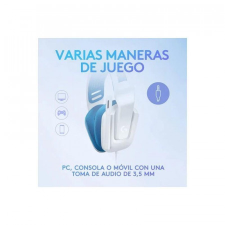 EAN 5099206094796Los auriculares gaming con cable Logitech G335 te ofrecen una experiencia de juego inmersiva con comodidad y estilo. Con un peso de solo 240 gramos, estos auriculares son ligeros y cuentan con un diseño de suspensión que distribuye el peso de manera uniforme para largas sesiones de juego.