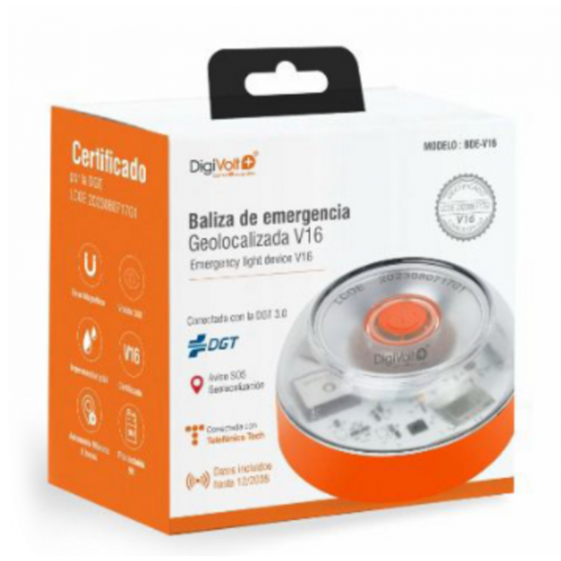 La Baliza V16 Digivolt es una luz de emergencia autónoma y homologada por la DGT, diseñada para señalizar rápidamente un incidente o avería en carretera, garantizando la máxima seguridad para el conductor y otros usuarios. Incorpora tecnología de geolocalización avanzada y conectividad para enviar la ubicación del vehículo directamente a la plataforma de la DGT 3.0 en caso de emergencia.