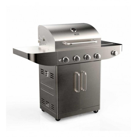 Equipada con una amplia superficie de parrilla de 65,5 x 44,5 cm, esta barbacoa ofrece espacio suficiente para cocinar para toda la familia y amigos. Cuenta con un total de 5 quemadores de gas, incluyendo 4 principales de 3,22 kW cada uno y un potente quemador lateral de 3,51 kW, permitiéndote una gran versatilidad para asar, cocer o mantener calientes tus platos simultáneamente.