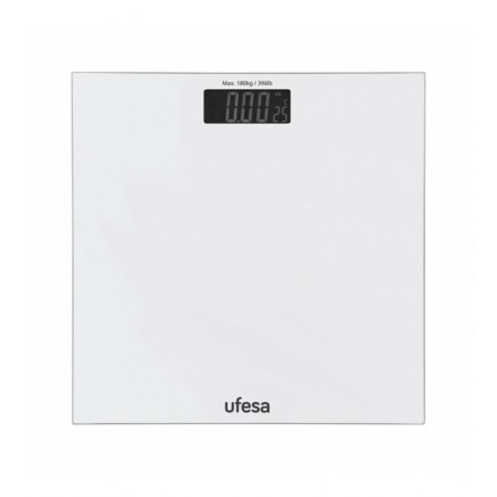 Equipada con una pantalla LCD clara, la báscula Ufesa Basel muestra el peso en unidades de kilogramos (kg) o libras (lb) según tu preferencia, con una resolución de 50 gramos para una lectura detallada. Su capacidad máxima de hasta 180 kg la hace adecuada para una amplia gama de usuarios.