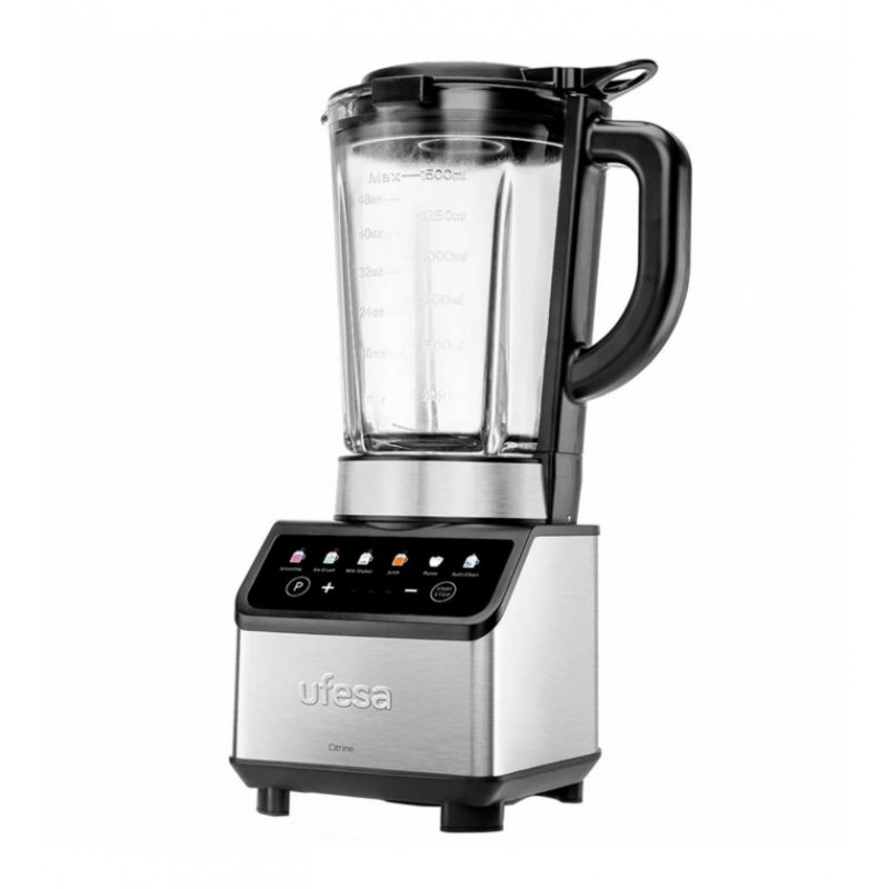 La batidora de vaso Ufesa Citrine es la aliada perfecta para tu cocina, ofreciendo una potente capacidad de 1200W para preparar todo tipo de recetas con facilidad. Su robusta jarra de cristal tiene una generosa capacidad de 1,5 litros, ideal para smoothies, batidos, zumos o purés para toda la familia.