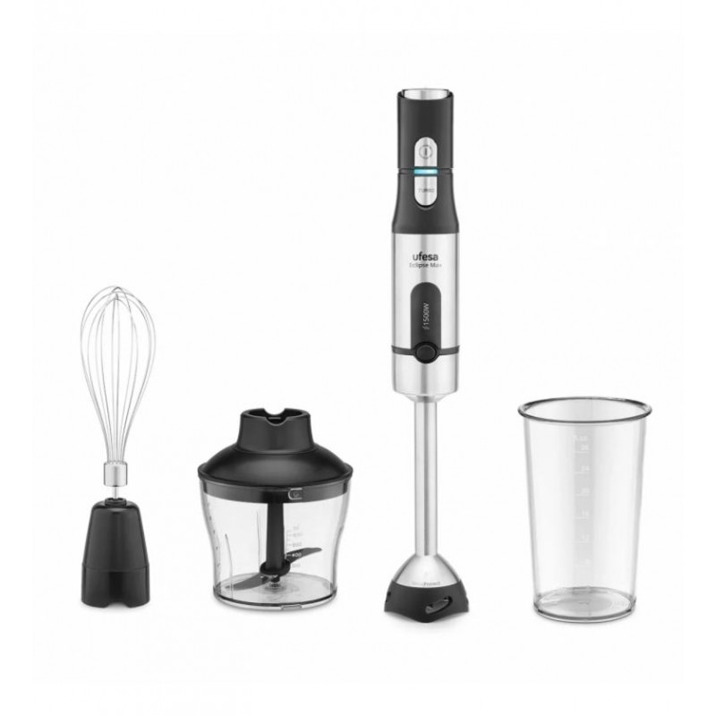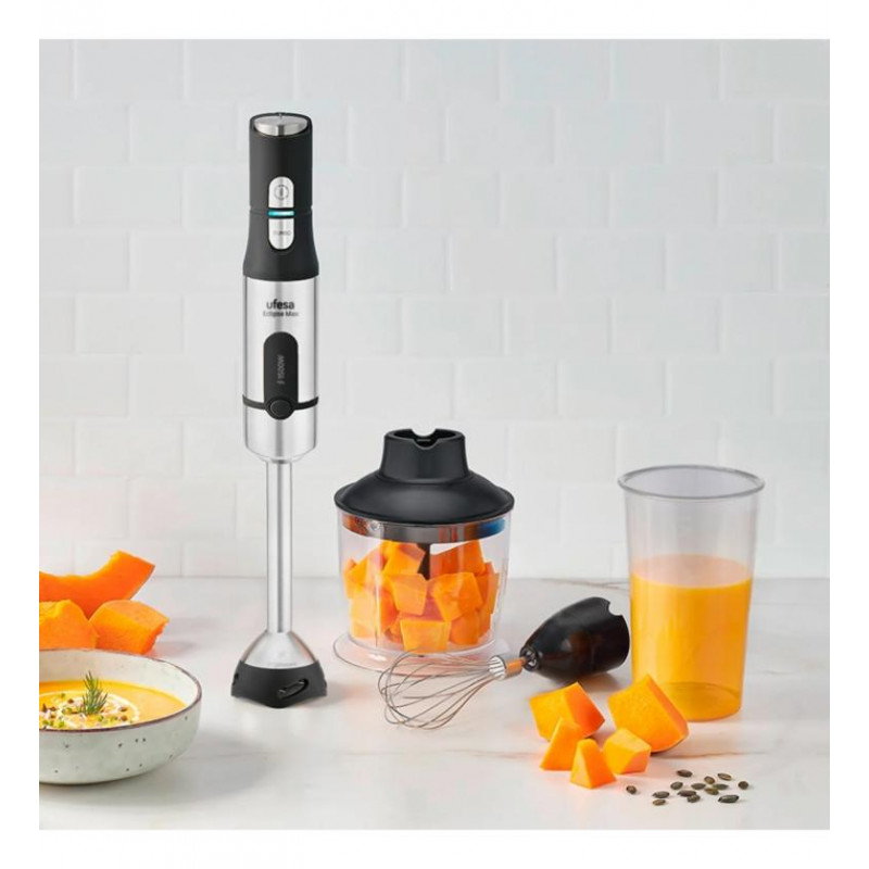 La batidora de brazo Ufesa Eclipse Max 1500W es la herramienta perfecta para tu cocina, combinando potencia y versatilidad en un diseño compacto y funcional. Con su motor de 1500W, te permitirá triturar, batir y picar todo tipo de ingredientes con facilidad, obteniendo texturas suaves y homogéneas en segundos.