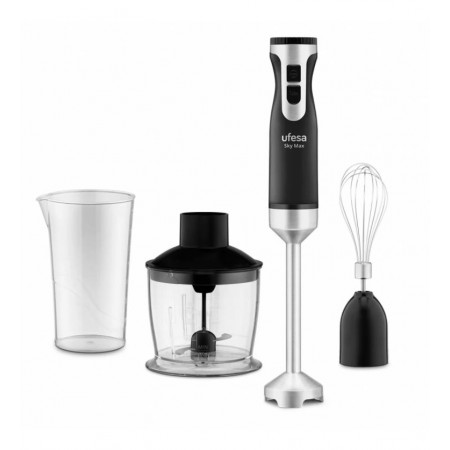 La batidora de brazo Ufesa Sky 1200 Max es la herramienta esencial para cualquier cocina moderna, combinando una potencia excepcional con un diseño práctico y elegante. Equipada con un motor de 1200W, esta batidora garantiza un rendimiento superior para triturar, mezclar y batir una amplia variedad de ingredientes con facilidad y rapidez.