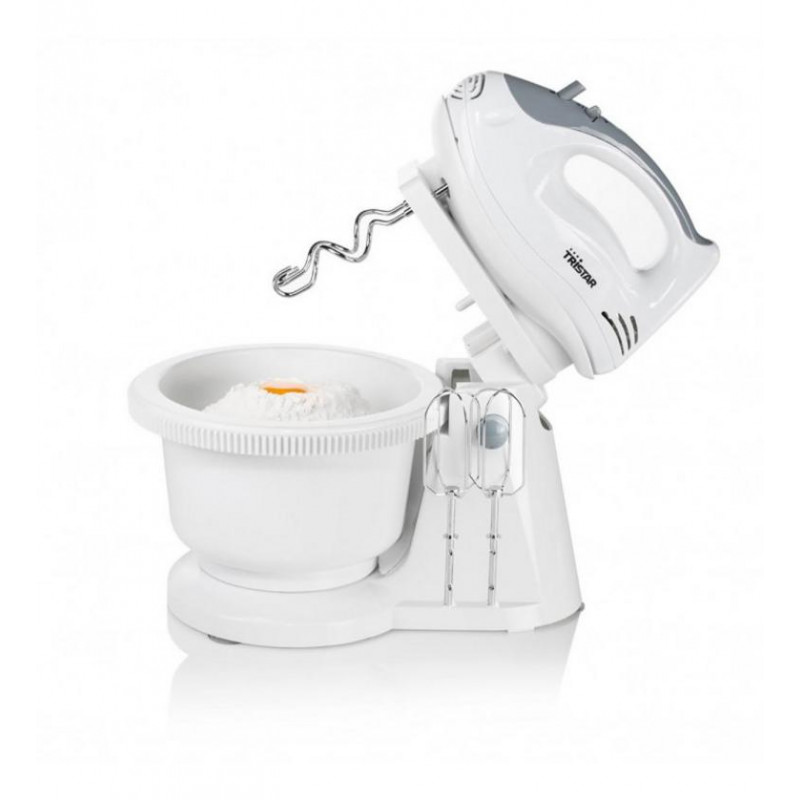 La batidora amasadora Tristar MX-4152 es el electrodoméstico perfecto para cualquier amante de la repostería y la cocina, ofreciendo una solución 3 en 1 para mezclar, batir y amasar con facilidad.