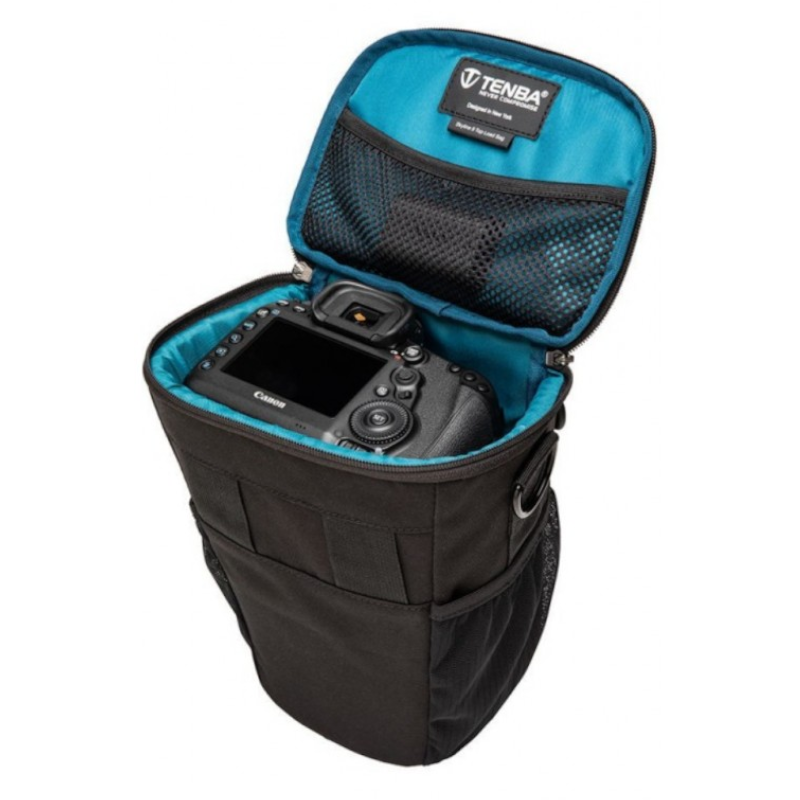 Tiene bolsillos laterales de malla donde puede llevar una botella de agua, llaves o deslizarse en la tapa del objetivo. Un bolsillo de malla adicional se encuentra debajo de la cubierta superior: puede llevar accesorios pequeños como tarjetas de memoria o documentos