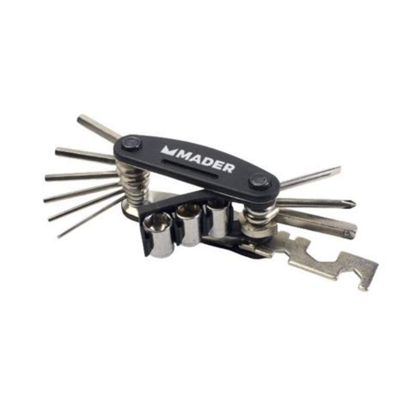 El estuche de transporte incluido permite organizar y llevar cómodamente todas las herramientas, facilitando su acceso y evitando que se pierdan. Con la calidad y fiabilidad de Mader, este kit es una inversión inteligente para prolongar la vida útil de tu bicicleta y disfrutar de cada trayecto con tranquilidad.