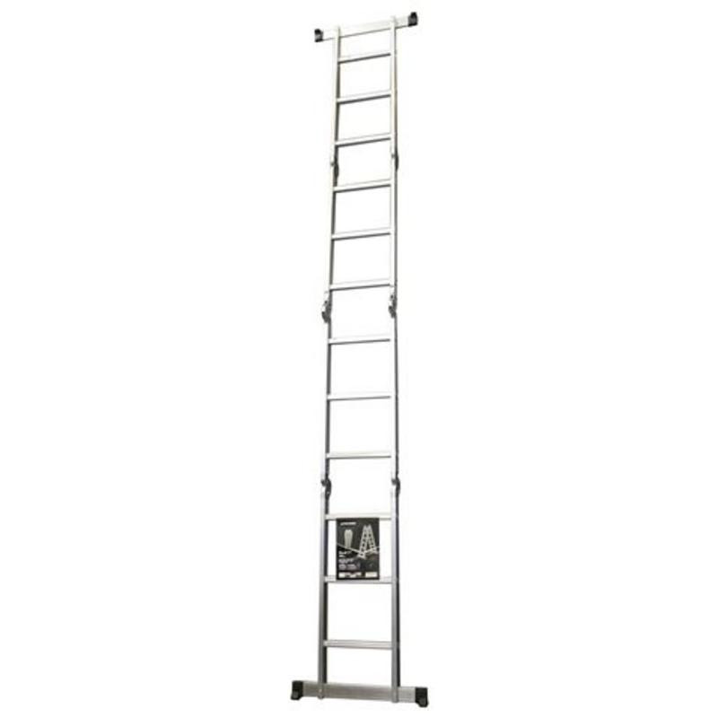 La escalera articulada de aluminio Mader 4x3 es la herramienta definitiva para trabajos en altura, diseñada para ofrecer máxima versatilidad y seguridad. Fabricada con aluminio de alta calidad, esta escalera cuenta con 12 peldaños distribuidos en 4 secciones, permitiendo hasta 4 configuraciones diferentes según la necesidad de cada tarea.